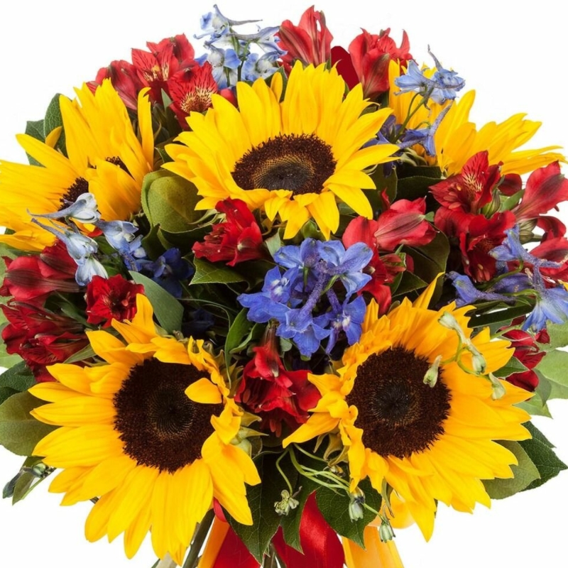 Альстромерия, Дельфиниум, Подсолнух |
