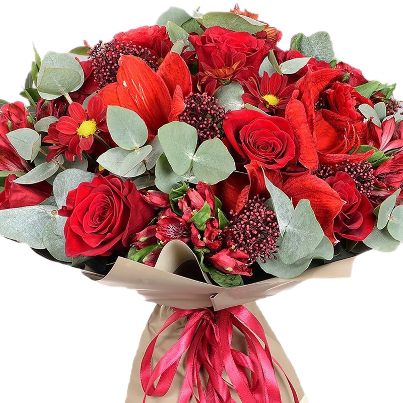 Альстромерия, Амариллис, Ранункулюс, Роза, Скиммия, Хризантема |