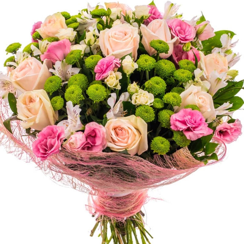 Альстромерия, Роза, Роза кустовая, Хризантема, Эустома |