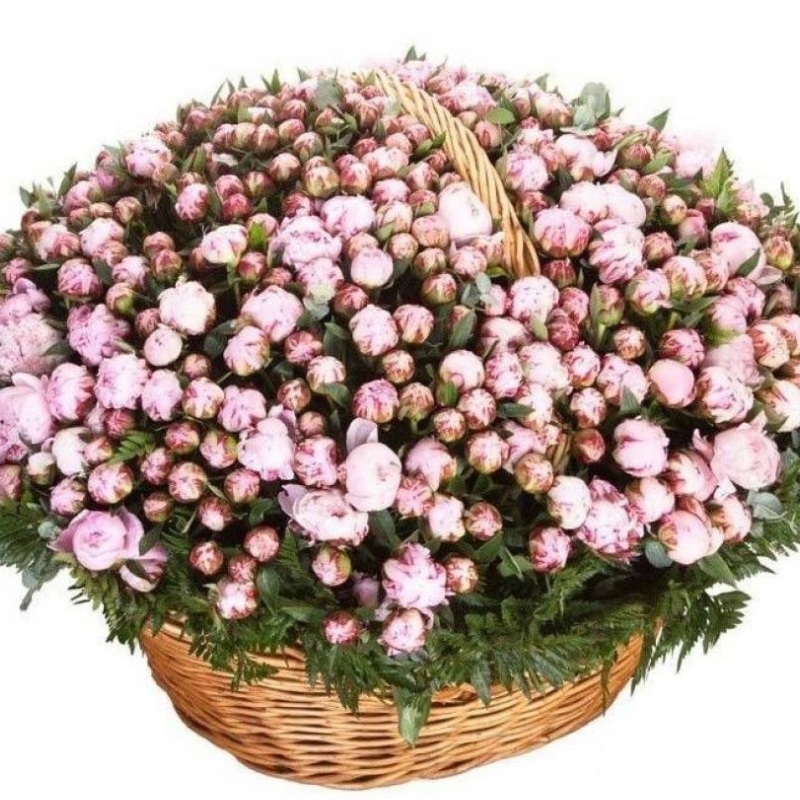 Букет из 501 розового пиона в корзине