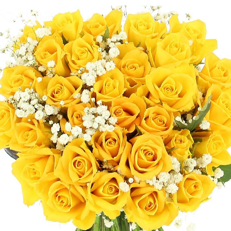 Букет из 55 желтых роз с гипсофилой