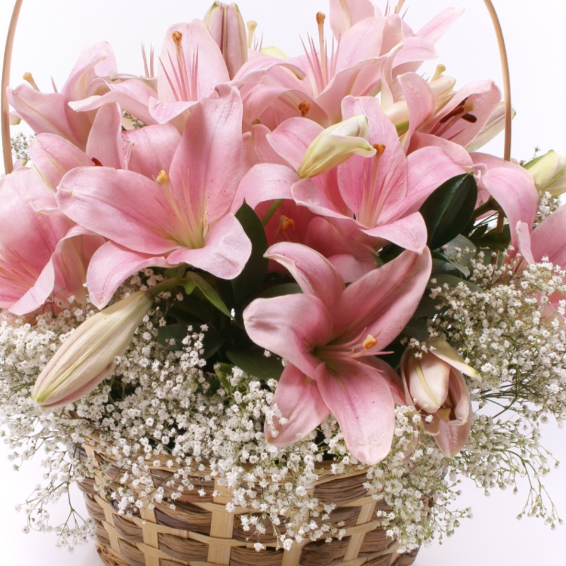 Букет из розовых лилий в корзине