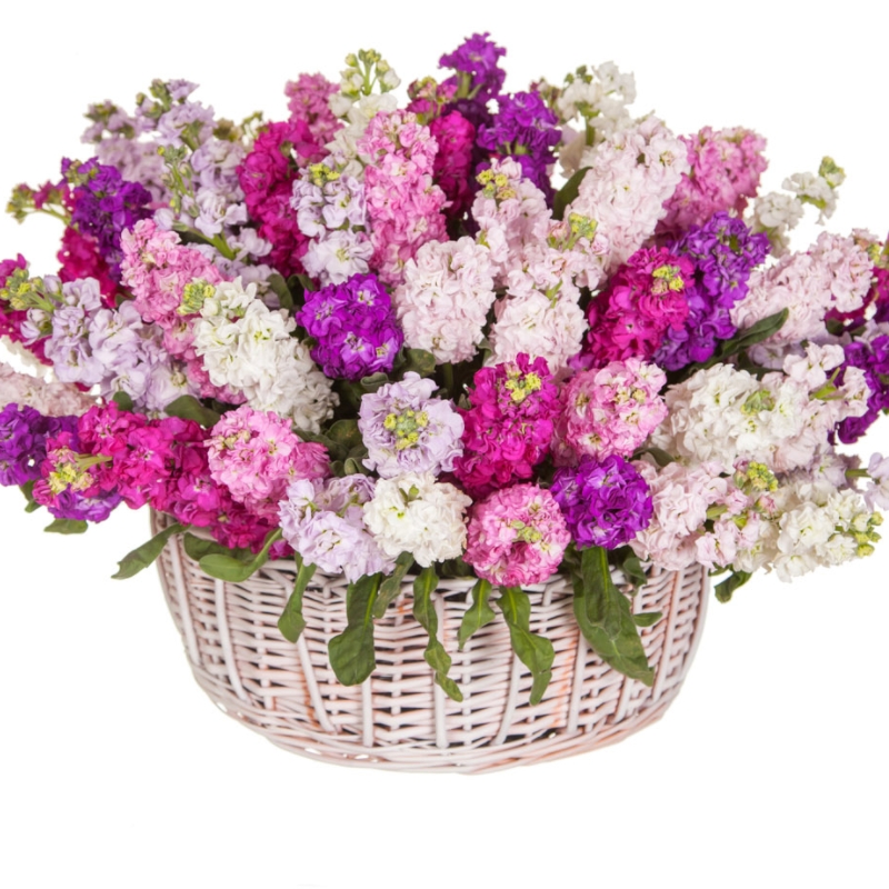 Букет из маттиол в корзине "Брызги шампанского"