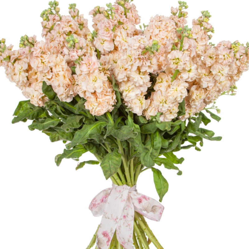 Букет состоит из 21 кремовая маттиола, атласная лента.