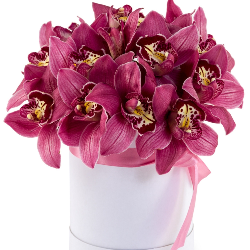 Букет из орхидей Цимбидиум в коробке