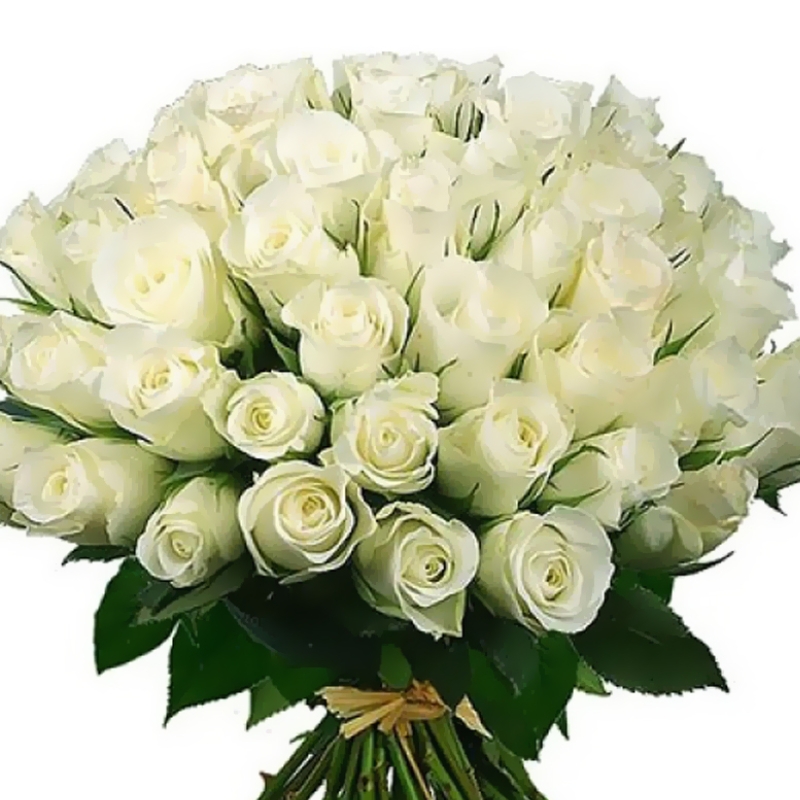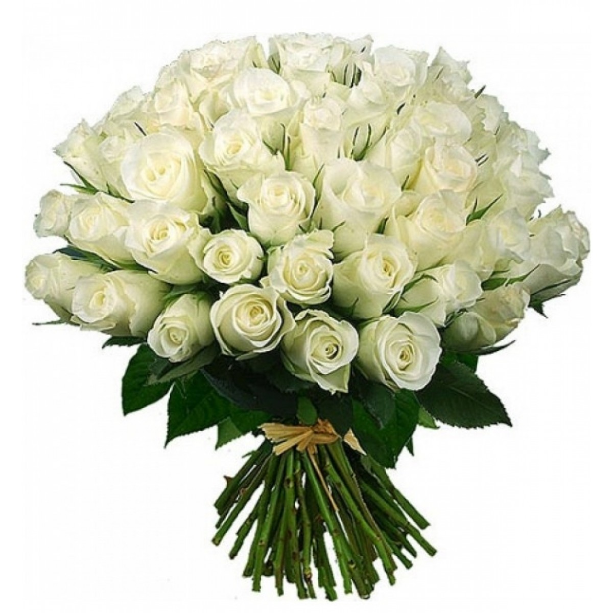 Букет состоит из 55 белых роз, прозрачная упаковка.