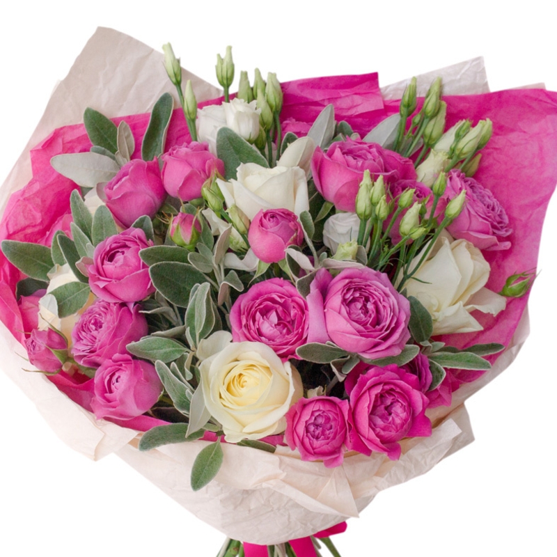 Роза 5 шт., Роза кустовая пионовидная 3 шт., Эустома 3 шт. |
