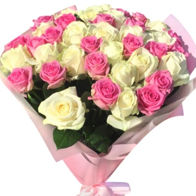 Букет состоит из 23 розовые розы, 22 белые розы, красивая упаковка, атласная лента.