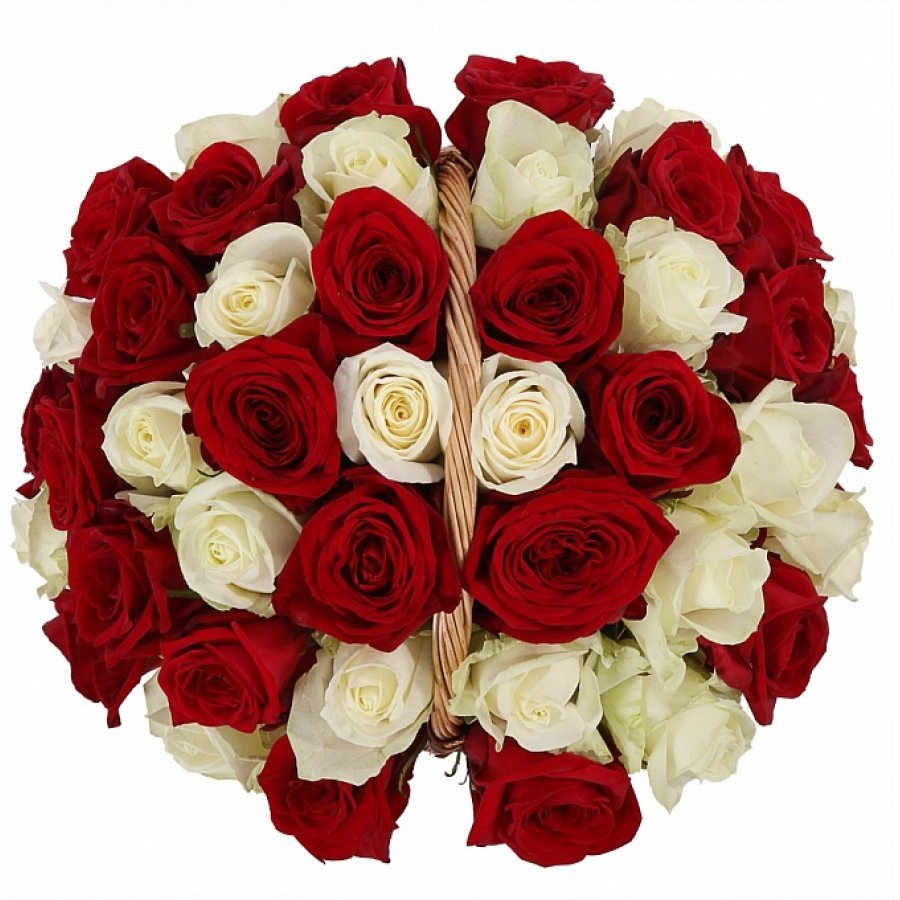 Корзина из 35 белых и красных роз