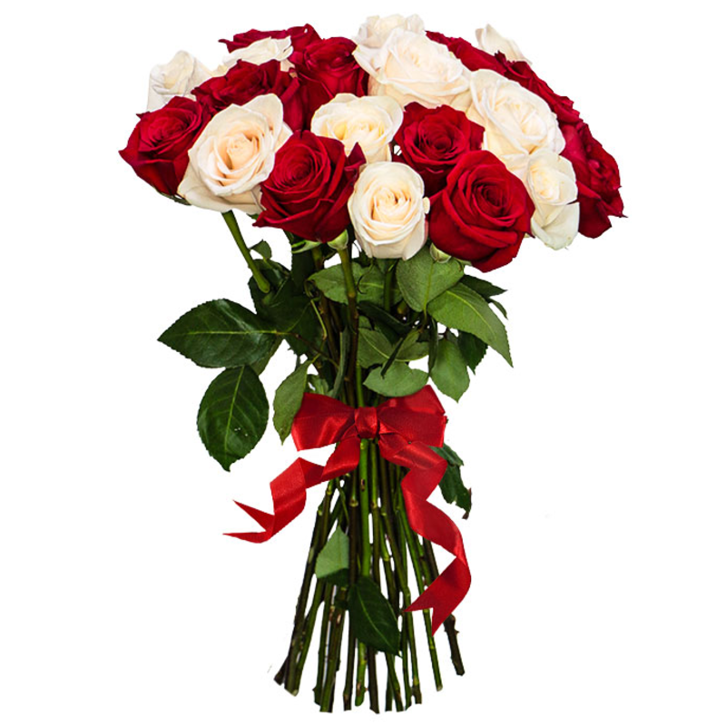 Букет из 21 красной и белой розы