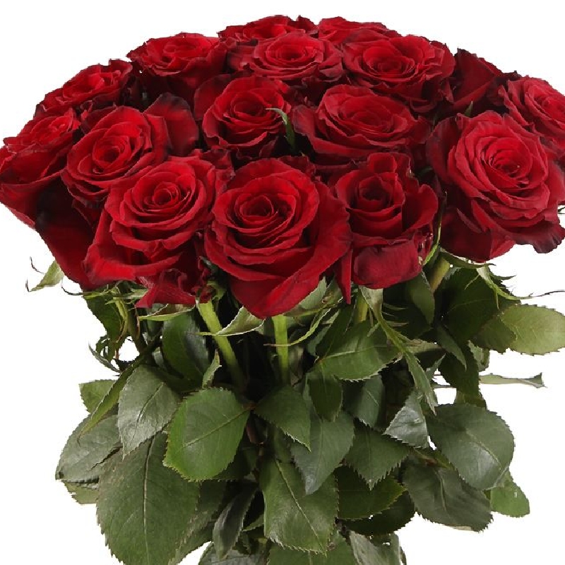 Букет состоит из 19 бордовых роз, прозрачная упаковка, атласная лента.