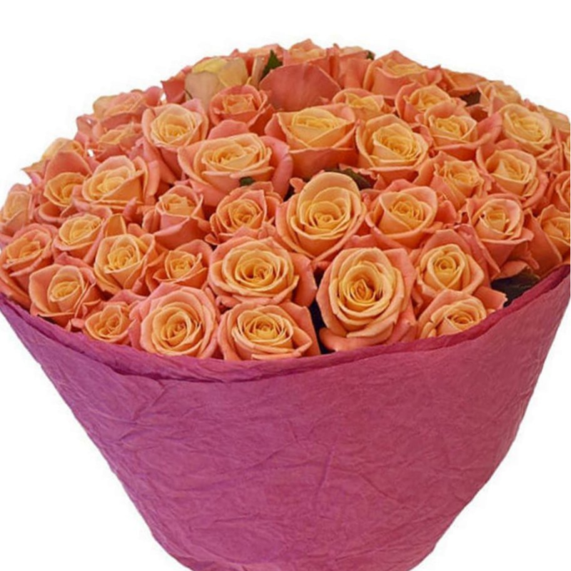Букет состоит из 51 оранжевая роза, красивая упаковка, атласная лента.