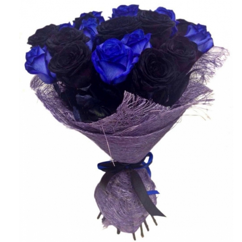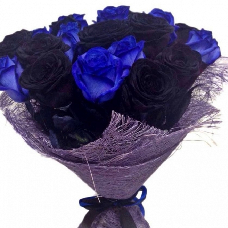 Роза синяя 10 шт., Роза чёрная 11 шт. |