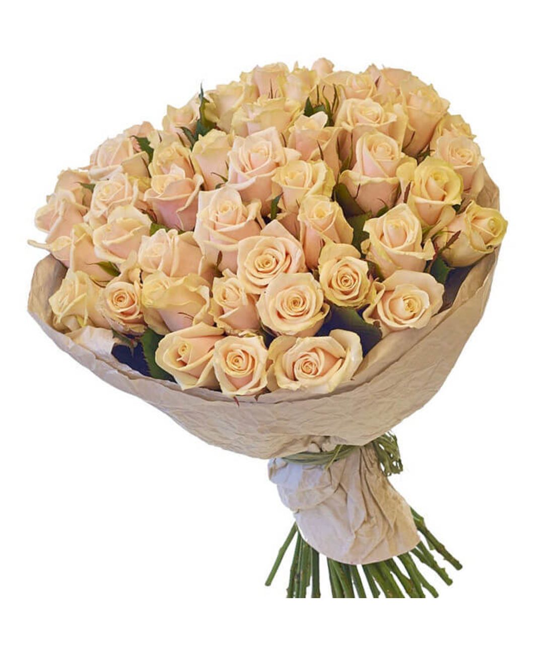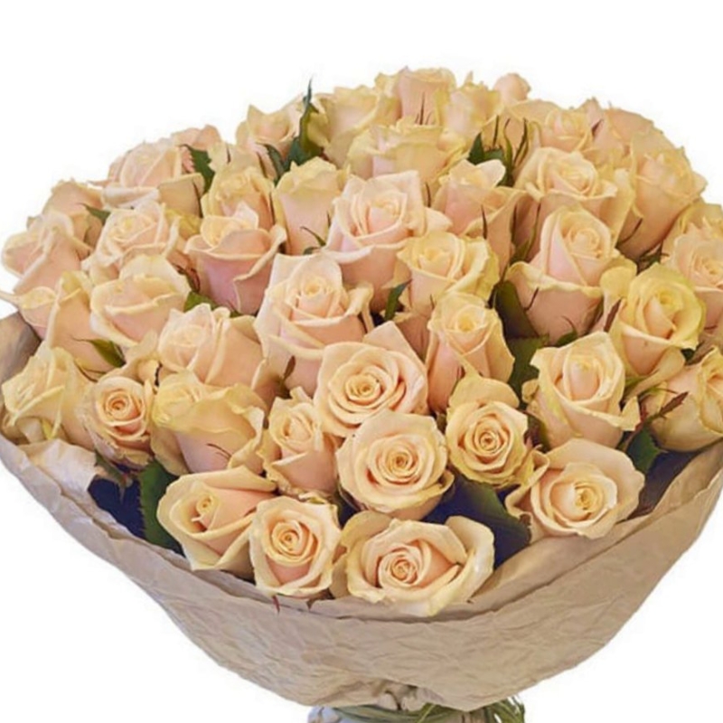 Букет состоит из 51 кремовая роза, крафт, атласная лента.