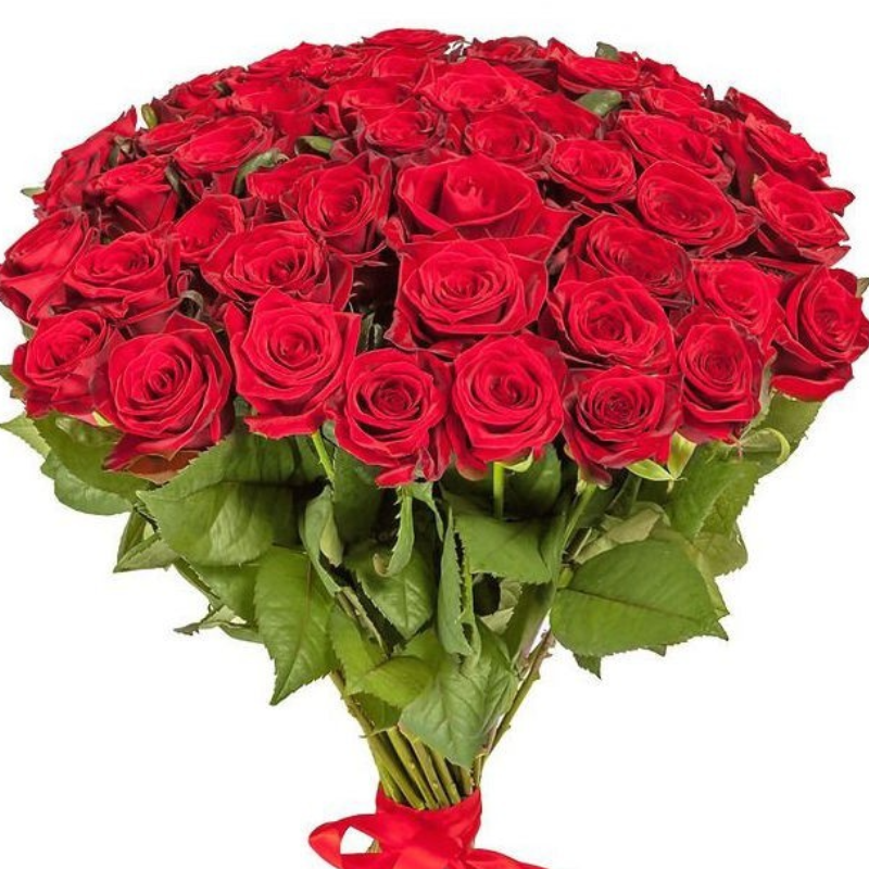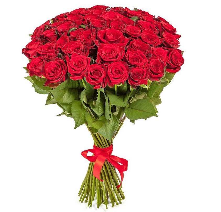Букет состоит из 51 красная роза, прозрачная упаковка, атласная лента.