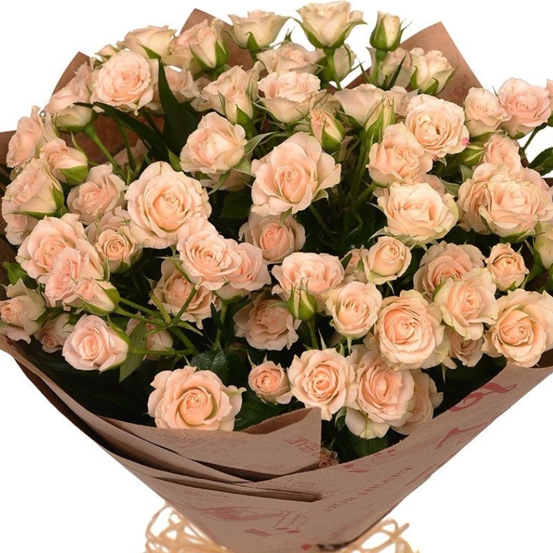 Букет состоит из 11 веток кремовой кустовой розы, крафт.