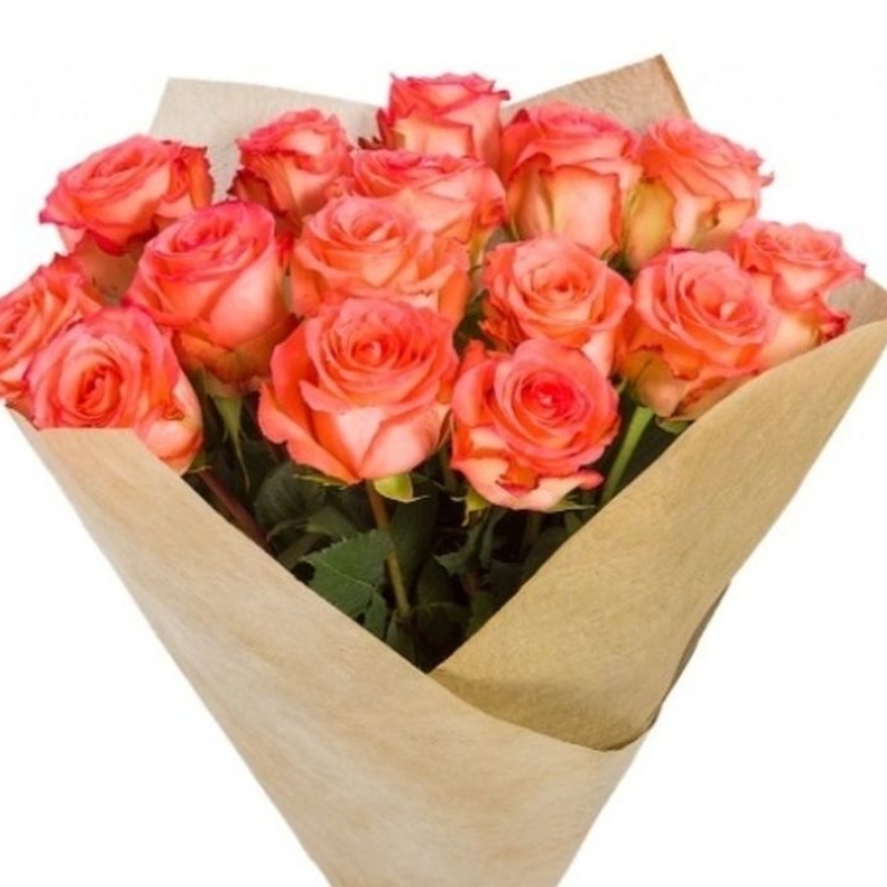 Букет из 19 оранжевых роз в крафте