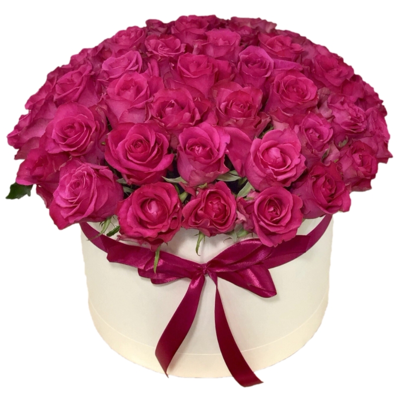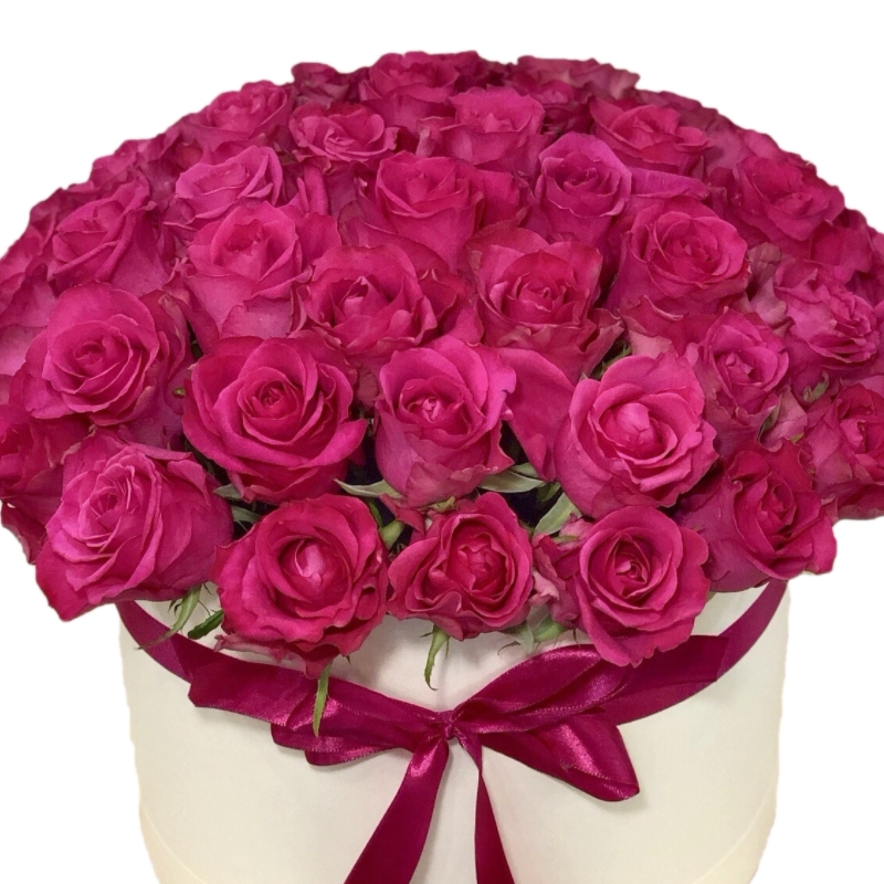 Букет из 51 малиновой розы в коробке