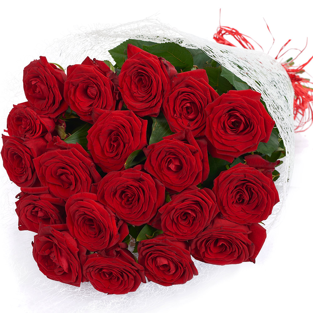 Букет состоит из 19 красных роз, в красивой упаковке.