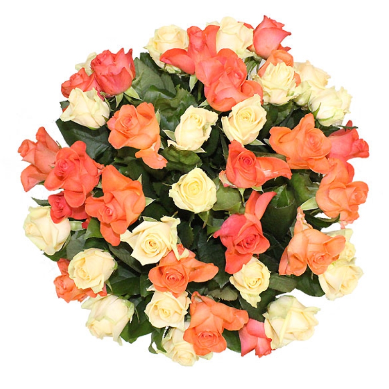 Букет состоит из 26 кремовой розы, 25 оранжевой розы, красивая упаковка, атласная лента.