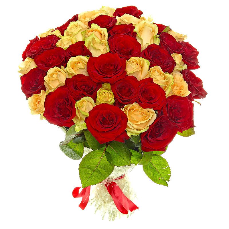 Букет из 55 красных и кремовых роз