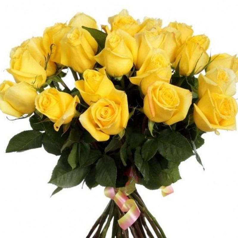 Букет состоит из 21 желтая роза, лента.