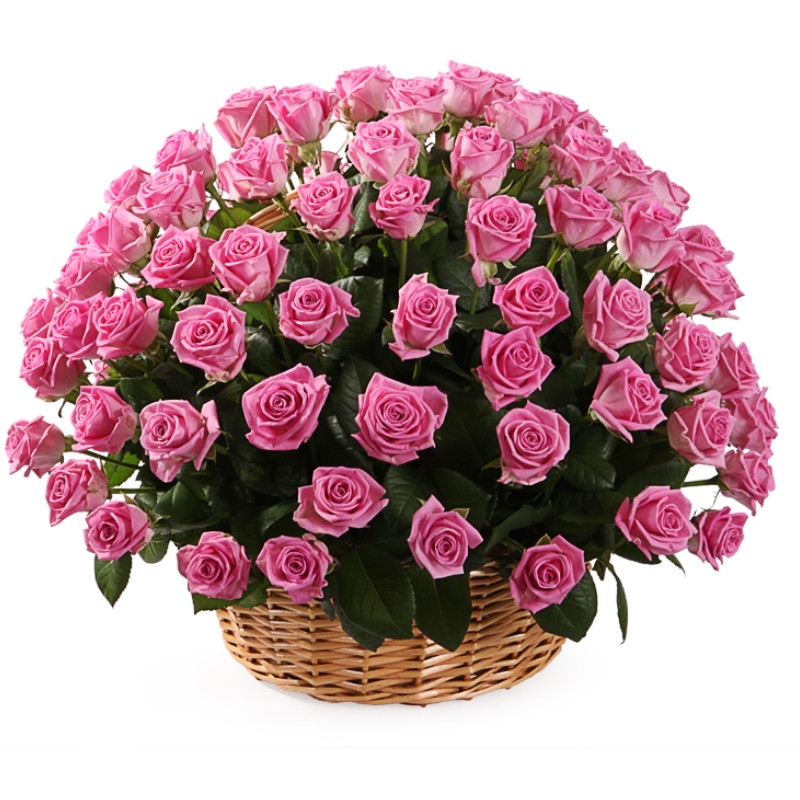 51 розовая роза, корзина.