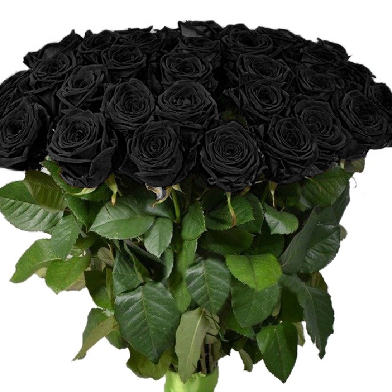 Букет состоит из 45 черных роз, прозрачная упаковка, атласная лента.