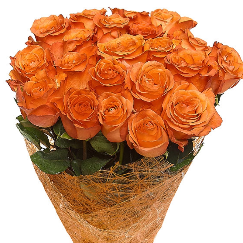 Букет состоит из 31 оранжевая роза, красивая упаковка, атласная лента.