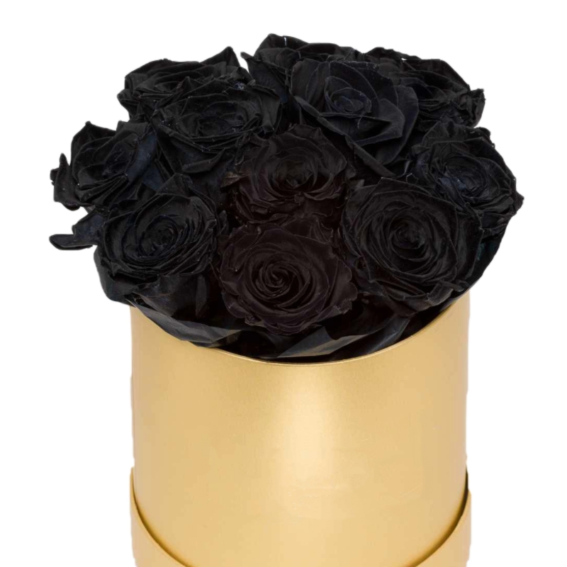 Букет состоит из 11 черных роз, коробка, оазис.