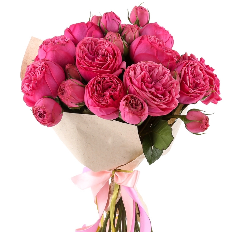 Букет из 11 кустовых пионовидных роз в крафте
