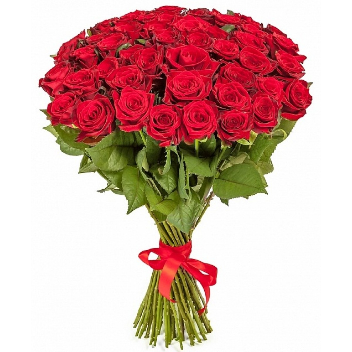 Букет состоит из 51 красная роза, прозрачная упаковка, красная лента.