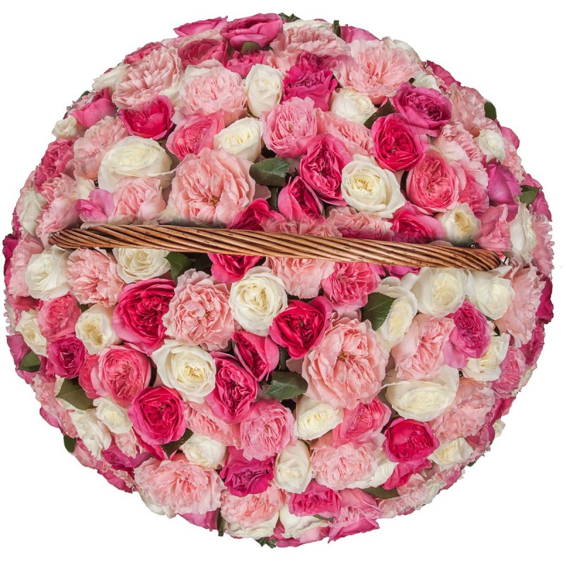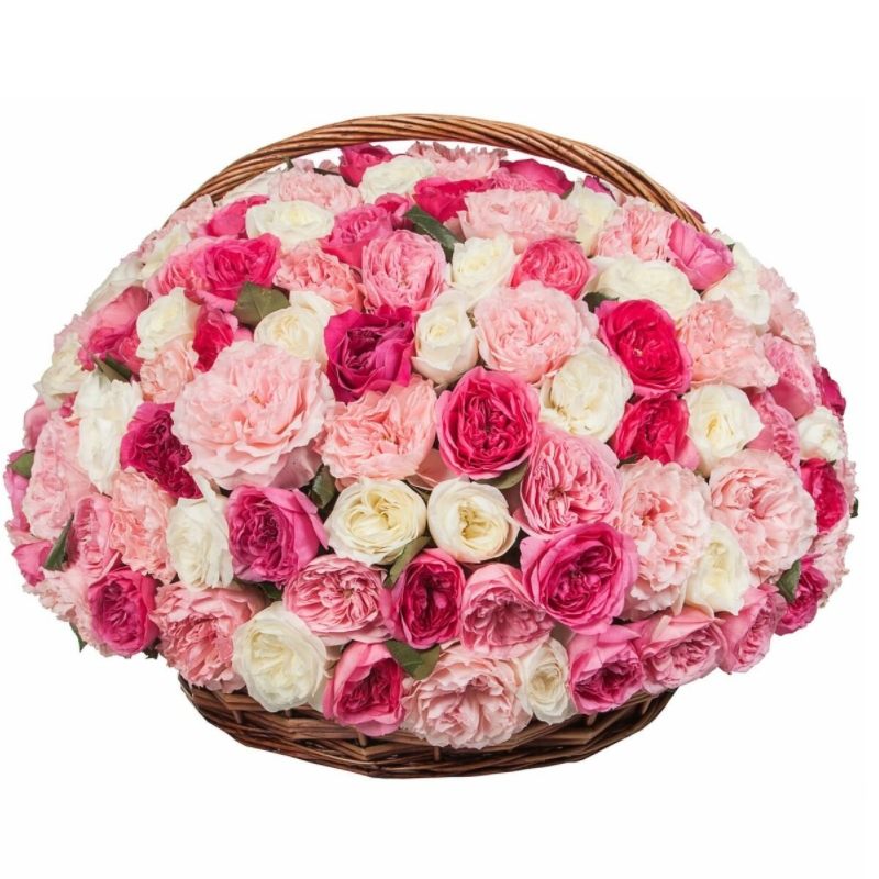MIX из 101 пионовидной розы, корзина, оазис.