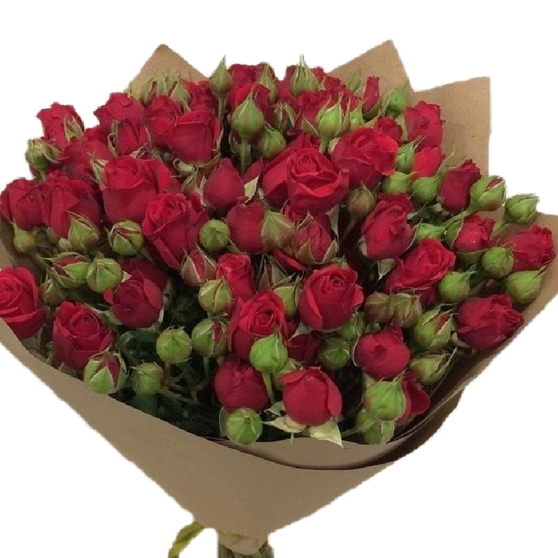 Букет из 11 красных кустовых роз в крафте