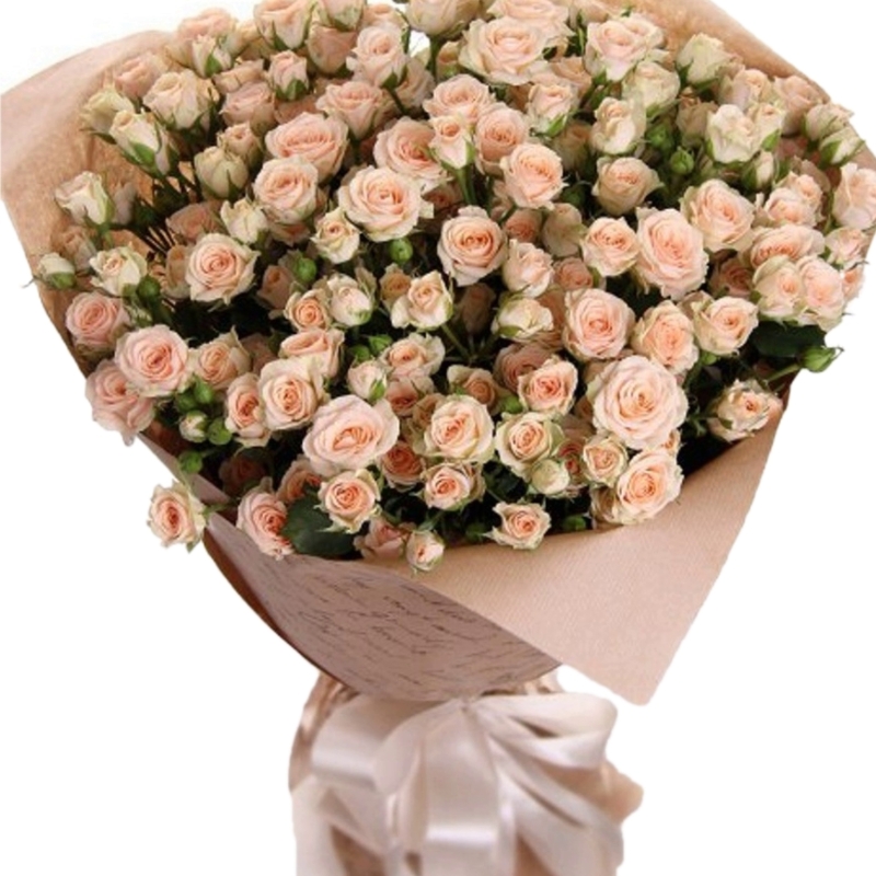 Букет из 35 кустовых кремовых роз в крафте.